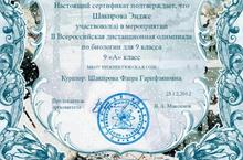 Учащаяся 9 класса Шакирова Эндже участвовала во II Всероссийской дистанционной олимпиаде по биологии.