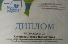 11 сыйныф укучысы Хасанова Ләйсәннең авыл тарихына багышланган эзләнү эше бәйгедә Диплом белән билгеләнде. (Җитәкчесе Корбанова Гөлнара Фәргатовна)