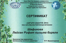 Яңа Шашы урта мәктәбенең 9 сыйныф укучысыШафикова Ләйсән һәм 11 сыйныф укучысы Габидуллина Айзирәк КФУда "Шигъри сабантуй" бәйгесенең бүләкләү тантанасында катнаштылар. (Укытучылары Корбанова Гөлнара Фәргатовна)