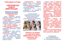 Ежегодно с 2005 года по инициативе Всемирной организации здравоохранения в апреле в Европе проводится Европейская неделя иммунизации (ЕНИ). Управление Роспотребнадзора по Республике Татарстан призывает не только взрослое население, но и студентов, школьников и даже маленьких жителей - проявить активность и принять самое непосредственное участие в проводимых мероприятиях. Только вместе мы сможем защитить себя от инфекций!