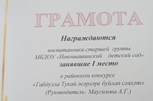 Воспитанники заняли 1 место в районном конкурсе, посвященном произведениям Габдуллы Тукая.