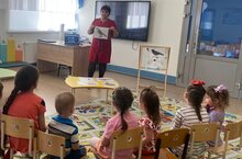 2023 елның 25 апрелендә катнаш төркемдә ел саен үткәрелә торган Бөтенроссия "Эколяталар көненә"багышланган чара уздырылды. Бу чарага без балалар белән алдан әзерләндек: әкият геройлары - табигатьне саклаучы дуслар белән таныштык, табигатьтә үз үзеңне тоту кагыйдәләрен өйрәндек/25 апреля 2023 года в разновозрастной группе было проведено мероприятие, посвященное Всероссийскому "Дню эколят" . К этому мероприятию мы с ребятами подготовились заранее: познакомились со сказочными героями - друзьями-хранителями природы, изучили правила поведения на природе