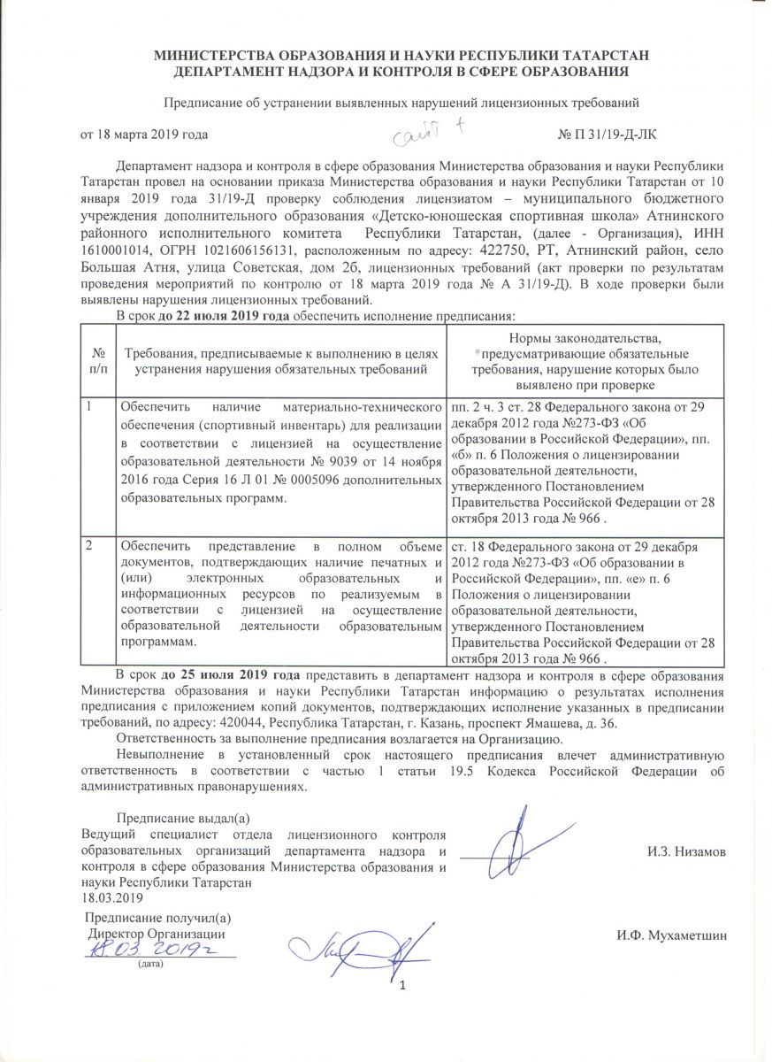 Предписания органов, осуществляющих государственный контроль (надзор) в сфере образования