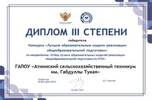 Группа преподавателей дисциплин общеобразовательного цикла Атнинского сельскохозяйственного техникума им. Габдуллы Тукая стала обладателем Диплома III степени в конкурсе «Лучшие образовательные модели реализации общеобразовательной подготовки» по направлению «Отбор лучших образовательных моделей реализации общеобразовательной подготовки по УГПС». Поздравляем!