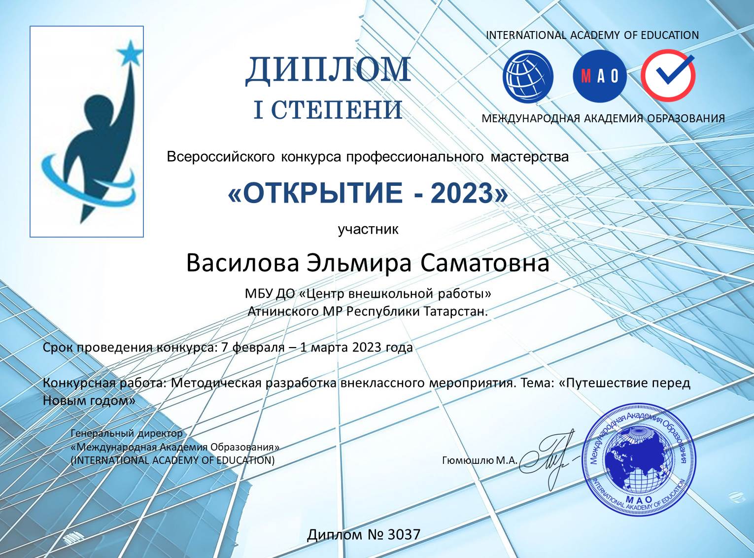 Диплом - Всероссийской олимпиады "Время Знаний"