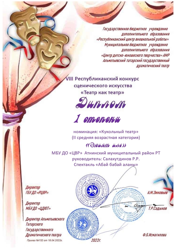 Результаты Всероссийского Фестиваля театрального творчества "Беренче театр"