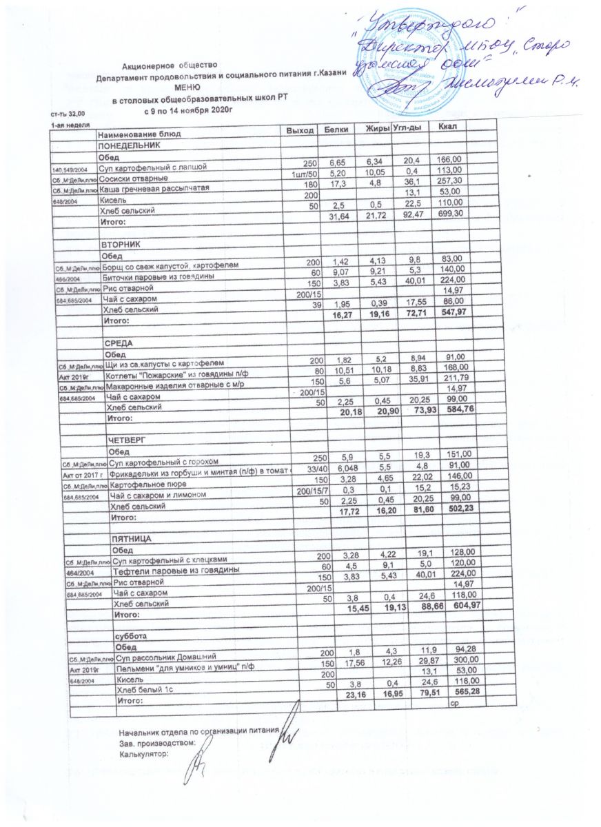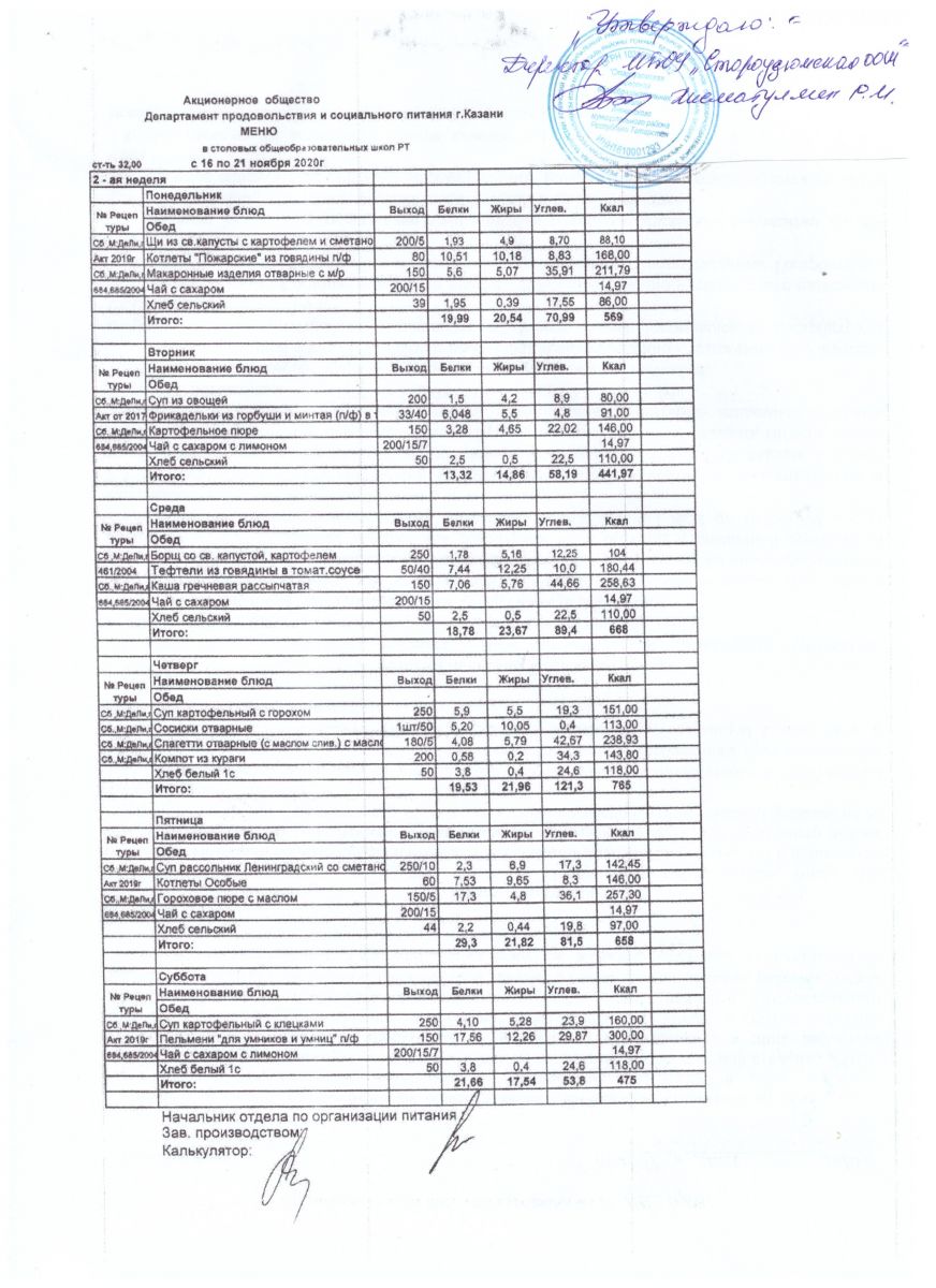 Примерное двенадцатидневное меню для организации горячего питания (горячих завтраков) для обучающихся старших классов 2 неделя