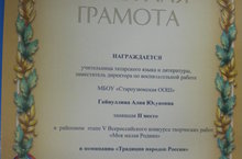 Гайнуллина Алия, “Минем кече Ватаным” V Бөтенрусия иҗади эшләр конкурсының район этабында катнашып, 2 урынны алды. 29.11.2014