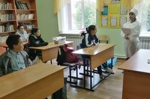 1 декабрь - Мәктәптә Бөтендөнья СПИДка каршы көрәш көне . Авыл фельдшеры Сәгыйтова Гөлүзә 8-9 сыйныф укучылары белән “Сәламәт яшик”дигән темага чыгыш ясады, укучыларны кызыксындырган сорауларга җавап бирде. Фельдшер Сагитова Г.Х. провела профилактическую беседу с учениками 8-9 классов на тему “Здоровый образ жизни” 01.12.2020