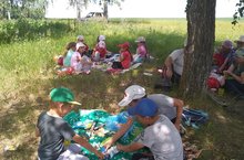 Россия көнендә асфальтка рәсем ясау конкурсы уздырдык. Шулай ук гимнны җырладык, Россиянең гербы, флагы турында да күп мәгълүмат белдек. 12.06.2019