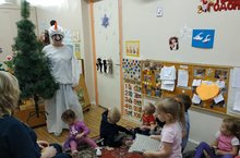 Сегодня Снеговик принес елочку и порадовал малышей 7 группы.