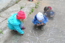 В этот праздничный день каждый ребенок смог нарисовать свои пожелания мелом на асфальте.