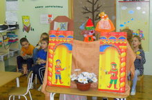 Дети подготовительной группы № 4 всегда радуют и удивляют нас своими представлениями. Сегодня они под руководством Саитовой Фирузы Исмаиловны показали малышам кукольный театр "Заюшкина избушка". Зрители и сами артисты остались довольны!