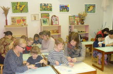 В группах проходят добрые утренники, которые называются " Один час с мамой". Мамы вместе с детьми участвуют в конкурсах, рассказывают стихи, дарят открытки и хорошее настроение.