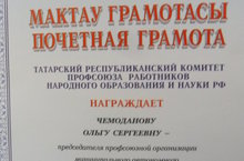Наша любимая Чемоданова Ольга Сергеевна - председатель профсоюзной организации детского сада № 300 была награждена Почетной грамотой. Желаем ей дальнейших успехов и энергии!