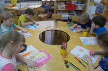 В детском саду прошел очередной педсовет, в котором были выслушены выступления по данной теме. Был подведен итог конкурса по презентации центров с использованием УМК. Вот они - наши победители: