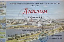 Поздравляем ученицу 1 Б класса Мадьярову Малику с призовым первым местом в Турнирепо художественной гимнастике городов России "ИДЕЛЬ"