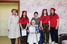 27 апреля юнармейцы 8 Г класса (учитель - Андреева С. Г. ) накануне главного праздника весны – Дня Победы навестили труженика тыла Мингазову Амину Бургановну.