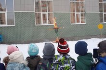 Вот и в нашей гимназии не остались в стороне от этой традиции. По традиции, в празднике приняли участие параллель 2-х классов, их классные руководители и родители. Ребята катались на ледянках, метали мячи на дальность, учились правильному ведению мяча, прыгали на «трех ногах», пели песни про весну и мерились силой при перетягивании каната. А затем сожгли чучело Масленицы, символизирующее зиму.