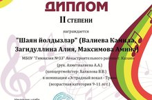 В этом конкурсе показали свое мастерство участницы вокального кружка гимназии - коллектив «Шаян йолдызлар» (Валиева Камилла, Загидуллина Алия, Максимова Амина). Девочки награждены Дипломом 2 степени!!!