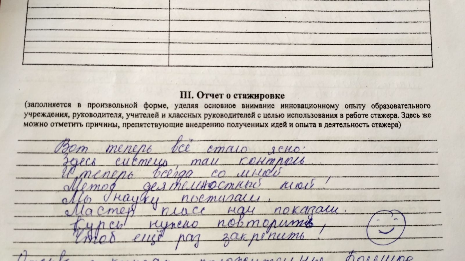« Я узнала много нового и интересного во время стажировки, ознакомилась с приемами и техниками активизации учебной деятельности на уроках».