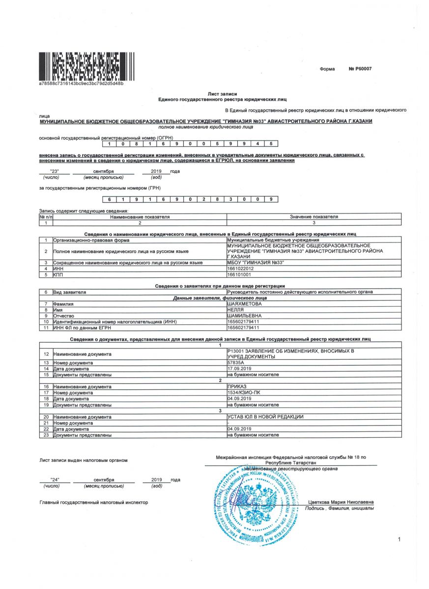 Муниципальное бюджетное общеобразовательное учреждение «Гимназия №33» Авиастроительного района г. Казани