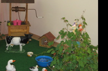 В холле на втором этаже нашего учреждения открылся экологический уголок при помощи ниших родителей детского сада.Мы благодарим дедушку 4 гр. Гизатуллина Фархата Минулловича за изготовление в экологический уголок малых архитектурных форм . Холл на 2 этаже-в будущем экологический центр нашего детского сада. При создании данного центра нами была поставлена цель: превратить холл для маленьких детей в действительную действующую развивающую экологическую среду, где дети встретятся с живыми обитателями: рыбками, в этом уголке планируются игры, пособия по экологии.