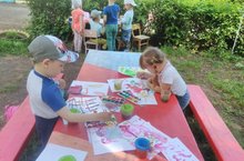 Я рисую лето, а кокого цвета? Красной краской солнце, на газонах розы,