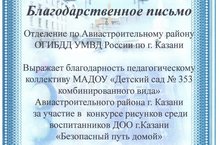 Отделение ОГИБДД УМВД России по городу Казани выразило благодарность педагогическому коллективу детского сада за участие в конкурсе рисунков среди воспитанников ДОО г.Казани "Безопасный путь домой"!