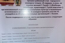 Поздравляем победителей 1 Республиканского конкурса "Красная ромашка" ("Кызыл ромашка") посвященный творчеству великого татарского поэта - героя Мусы Джалиля: Диплом лауреата 1 степени - Иматдинова Самира (12 группа), Николаев Радмир (10 группа), Диплом лауреата 2 степени - Шаяхметова Амина - (10 группа), Диплом лауреата 3 степени - Гарипова Камила (10 группа), Антонова Радмила (10 группа)