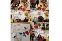 Коллективная работа в 1 младшей группе №2, птицы зимой "Угостим птиц......"