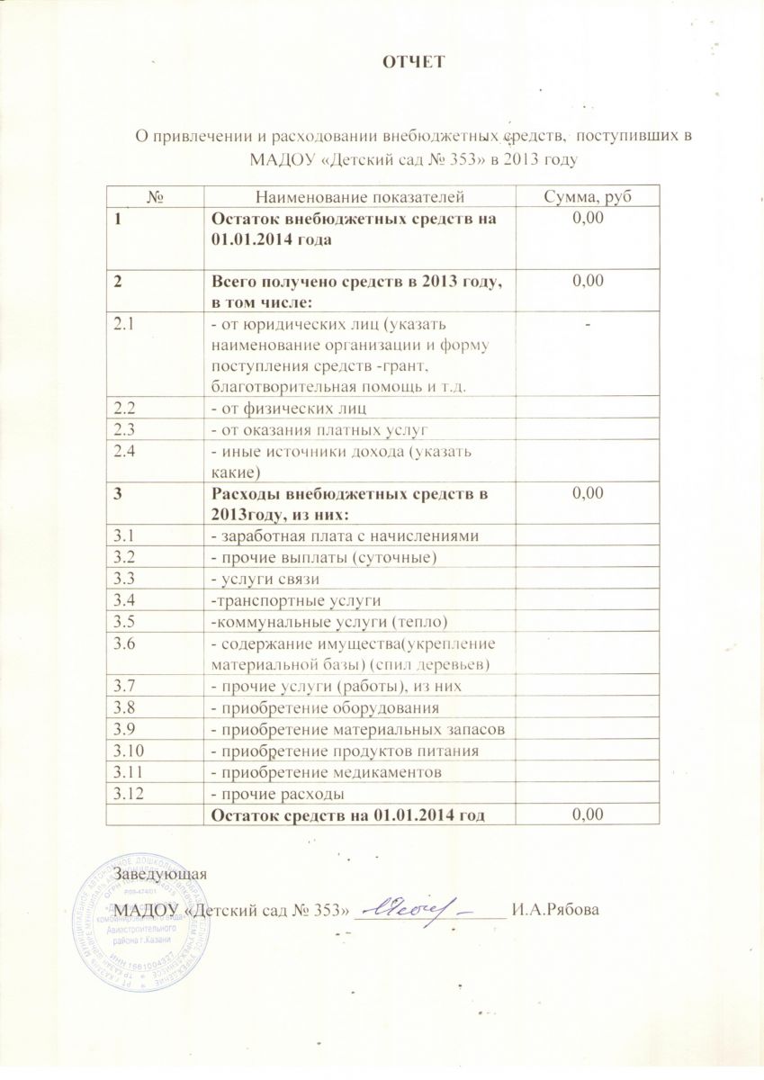 Отчет о привлечении и расходовании внебюджетных средств 2013 год