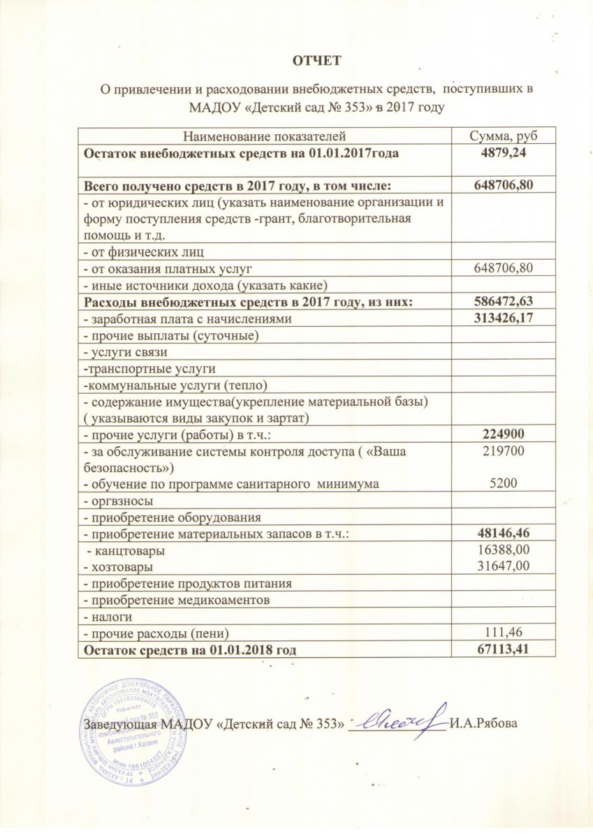 Отчет о привлечении и расходовании внебюджетных средств 2017 год