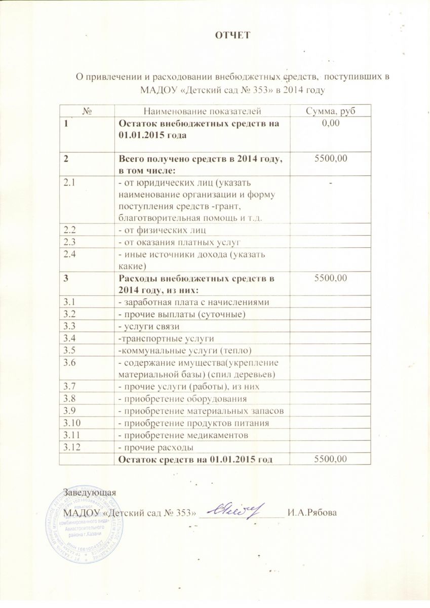 Отчет о привлечении и расходовании внебюджетных средств 2014 год