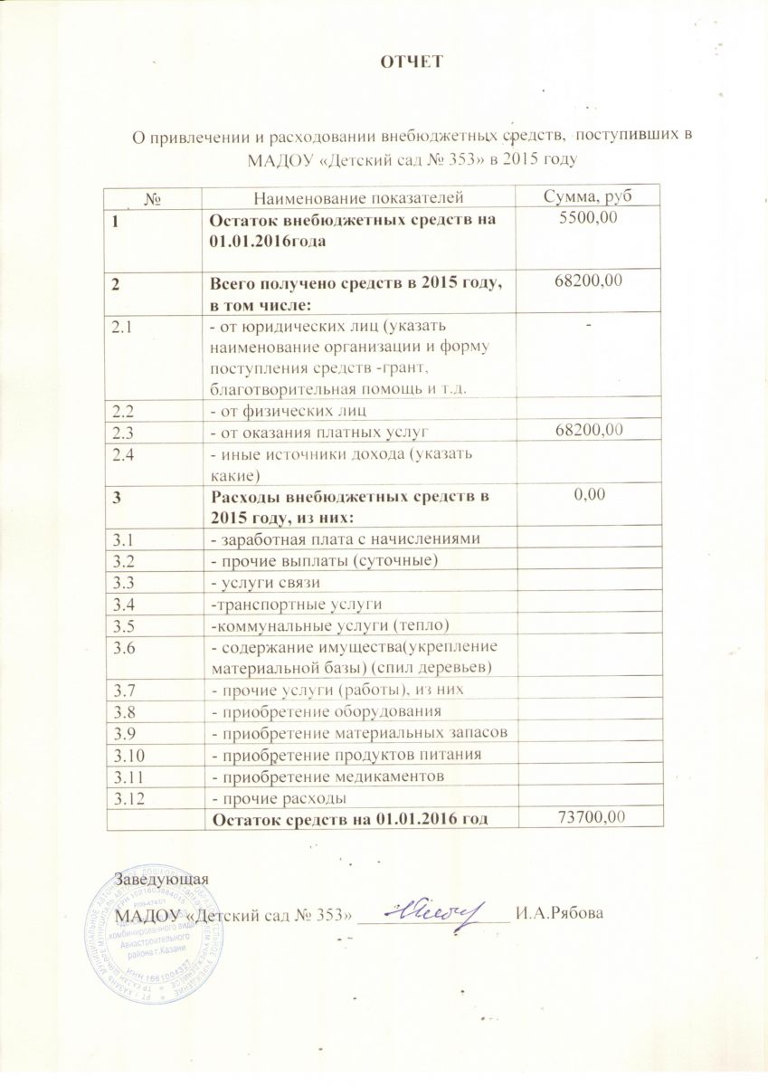 Отчет о привлечении и расходовании внебюджетных средств 2015 год