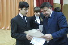 В торжественной обстановке награжден лидер детской общественной организации Костанян Арман, ученик 10В класса, занявший II место в районном конкурсе "Лидер 2012".