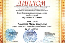 24 апреля состоялась республиканская олимпиада юных изобретателей «Кулибины XXI века». Лицей на этой олимпиаде представляла ученица 10Г класса Казакова Маша с проектом «Комбинированный ветродвигатель» и заняла II место среди старших школьников городских школ. Поздравляем!