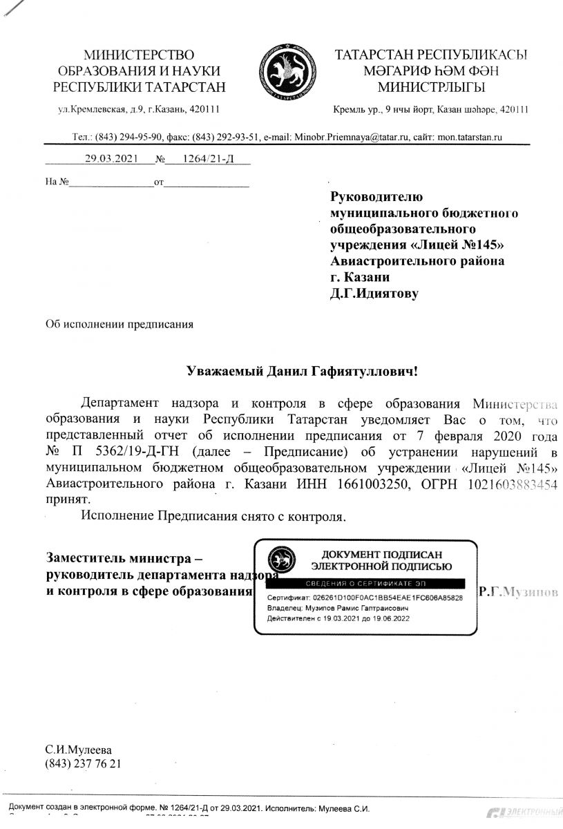 Муниципальное бюджетное общеобразовательное учреждение "Лицей №145" Авиастроительного района г. Казани