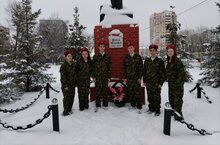 Юнармейцы почтили память погибших солдат во время ВОВ минутой молчания и возложили к памятнику Мусы Джалиля венок.