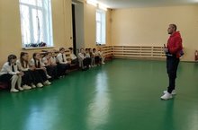 В 5 "А" классе была организована встреча с Хакимовым Леонидом Бариевичем, отцом Хакимовой Карины. Он рассказал детям о своей спортивной карьере. Леонид Бариевич призвал детей быть целеустремленными, научиться спланировать свое настоящее и будущее, развить в себе черты самоорганизации и усидчивости, уметь принимать проигрыши и жизненные неудачи, научиться реально оценивать свои силы и возможности. Любопытные дети задавали много вопросов.