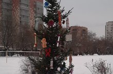 Во дворе лицея были украшены елки, елки украшены игрушками которые сделали учащиеся 1 -4 классов