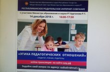 Родительское интернет-собрание с участием Министра образования и науки РТ Бурганова Р.Т. состоится 14 декабря online-трансляция на сайте киу.рф начало 16.00.Тема сгобрания "Этика педагогических отношений". Задать свой вопрос можно написав письмо на адрес roditelirt@mail.ru