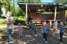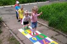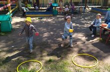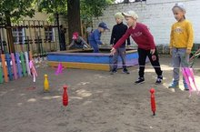 Лето – пора отдыха и веселья! Наши воспитатели совмещают приятное с полезным. Воспитанники группы "Берёзка" не только резвятся, отдыхают и веселятся, а делают это с пользой. Кольцеброс – это динамичная спортивная игра для улицы, суть которой состоит в попадании кольцами в цель. Такая простая, но увлекательная игра создана специально для тренировки меткости и ловкости.