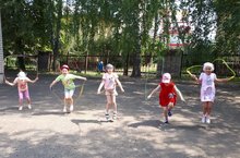 В нашем детском саду большое внимание уделяется физическому развитию детей. Прыжки через скакалку используем для укрепления мышц ног, улучшения координации и подвижности стоп. Это прекрасное средство тренировки сердечно - сосудистой и дыхательной систем, развивающее общую выносливость и координацию движений. Наши воспитанники с огромным удовольствием прыгают через скакалку. А это значит, что они будут выносливыми и здоровыми.