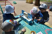 В эти солнечные летние дни наши воспитатели создают условия для игровой деятельности воспитанников. Поэтому нашим малышам весело и интересно на прогулке.
