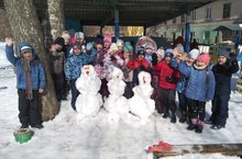 На дворе весна, а снегу намело столько, что дети с огромной радостью принялись лепить снеговиков. Вот какие снеговички получились!