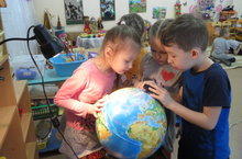 Как интересно покрутить глобус и узнать в какой части Земли ты живешь, и какие еще есть страны, и чего больше на планете воды или суши. А еще с помощью настольной лампы можно провести опыт и узнать почему бывают день и ночь.