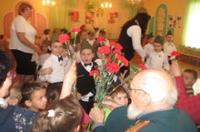 Вопрос формирования у дошкольников предпосылок патриотической позиции приобретает особое значение в преддверии празднования победы в Великой Отечественной войне.Тема Великой Отечественной войны всегда была и будет актуальной в современном обществе. Нет сомнения в том, что уже в детском саду в результате целенаправленной воспитательной, систематической работы у детей могут быть сформированы элементы гражданственности и патриотизма. Наша обязанность – помочь сохранить память об исторических фактах, героических поступках защитников нашей Родины. Сегодня в нашем детском саду состоялся праздник, посвященный Дню Победы. праздник прошел торжественно с песнями, танцами, конкурсами, минутой молчания. На праздник были приглашены ветераны Великой Отечественной войны, которым наши воспитанники подарили красные гвоздики.