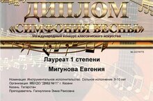 Поздравляем наших пианистов: Ахметшина Рузаля и Мигунову Евгению с победой на Международном конкурсе "Симфония весны", преподаватель Галиуллина Эмма Раисовна.