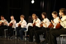 Ансамбль домристов «Яшьлек». Образовался из учеников старших классов осенью этого учебного года. Руководитель Семёнова Ирина Юрьевна, концертмейстер Сидорова Ирина Михайловна. Уже успел стать Лауреатом Международных и Всероссийских конкурсов и украсил своим выступлением наш отчетный концерт школы.